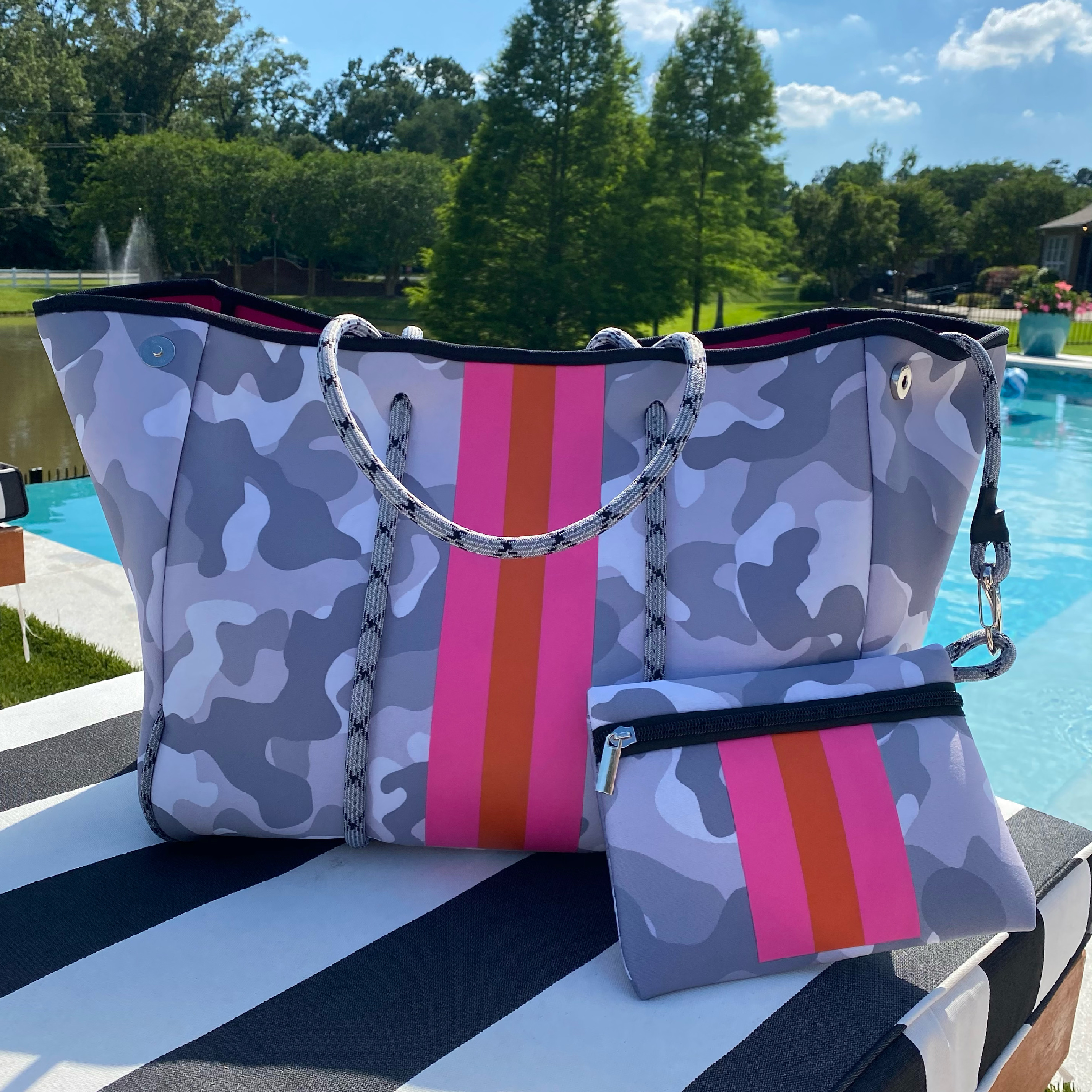 Grey Camo Neoprene Tote Bag
