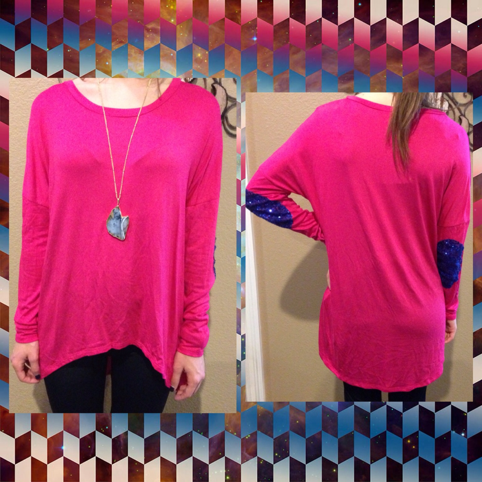 Pink Top with Sequin Elbows
