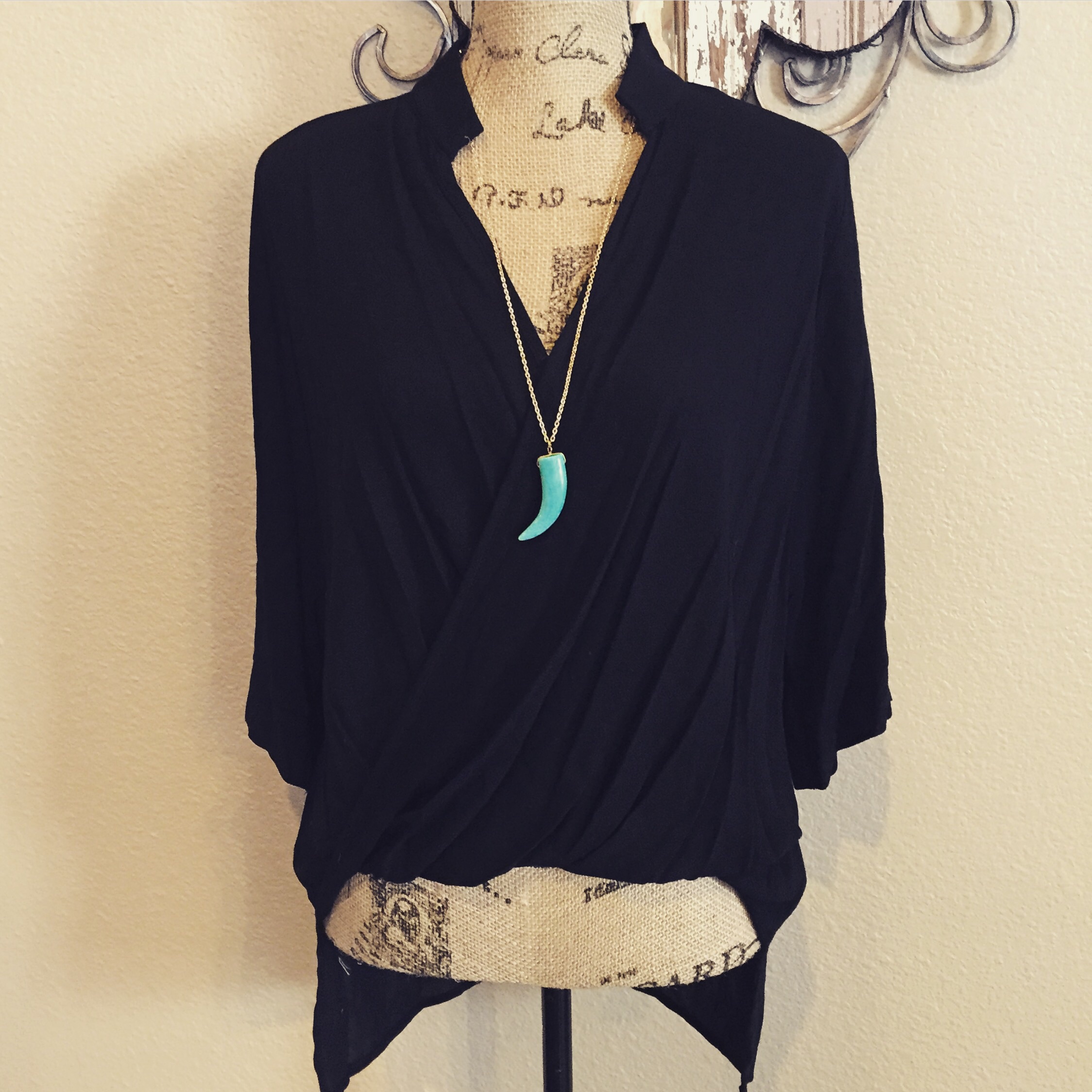 Black Twisted Hi-Lo Top with Collar