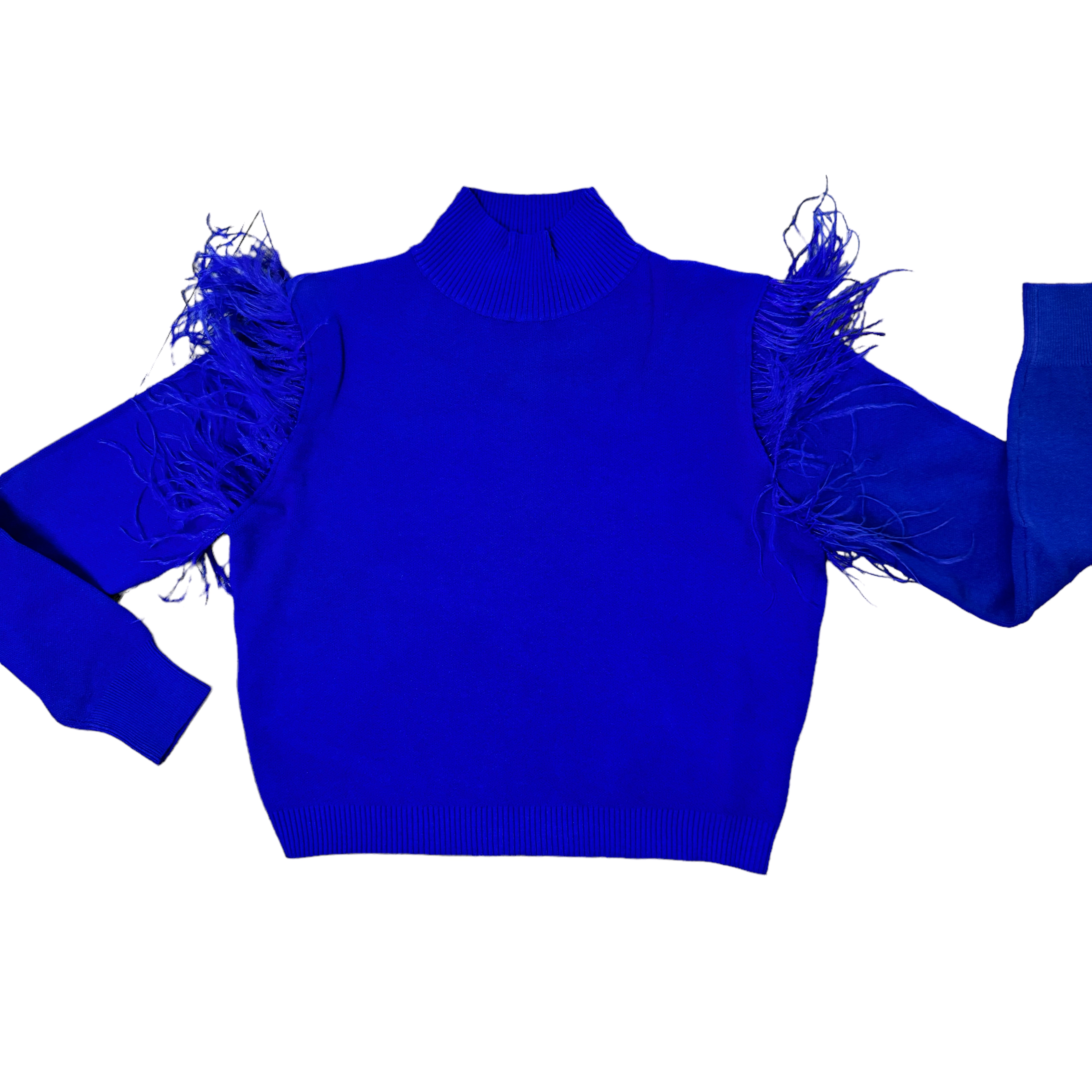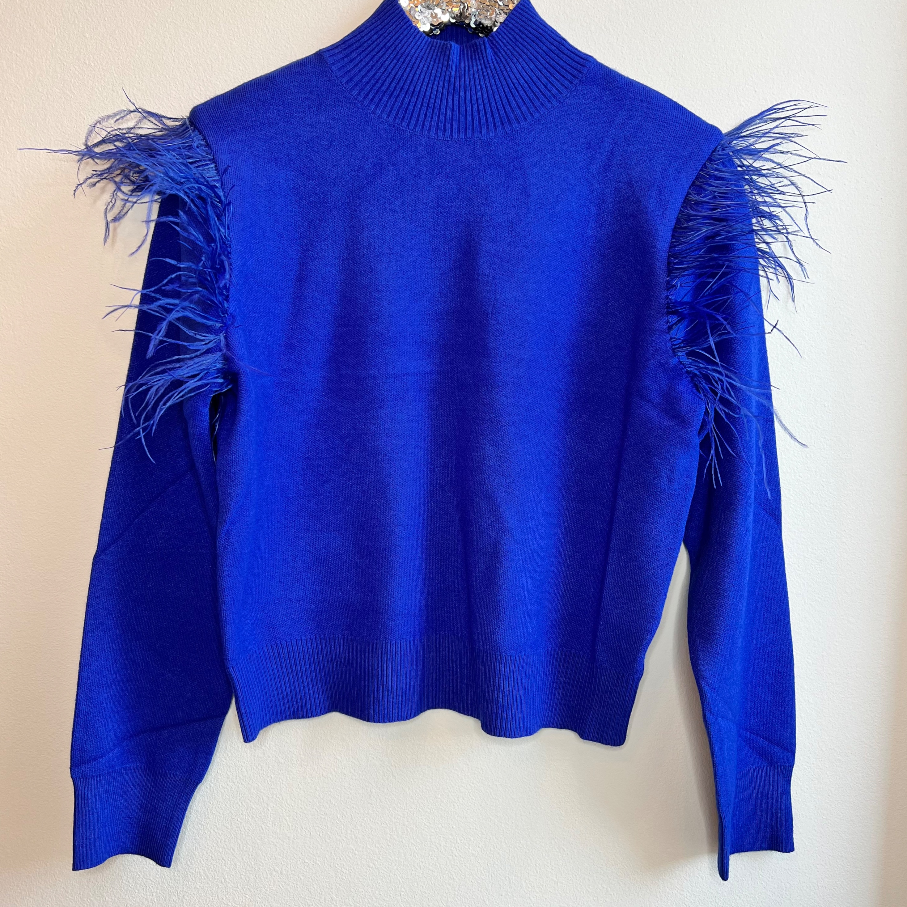 Blue Feather Trim Sweater